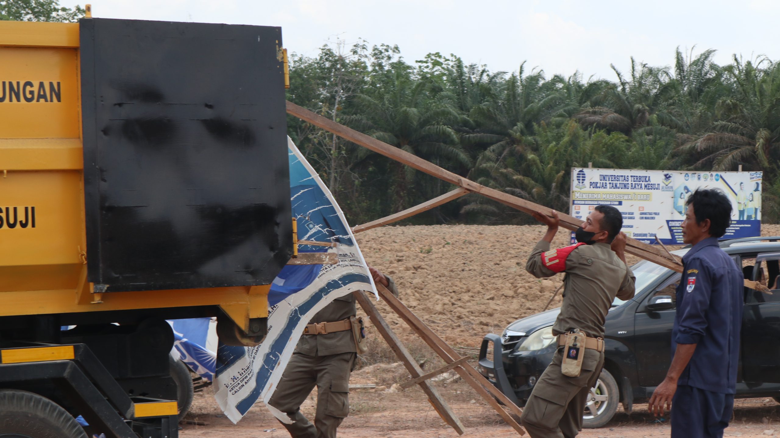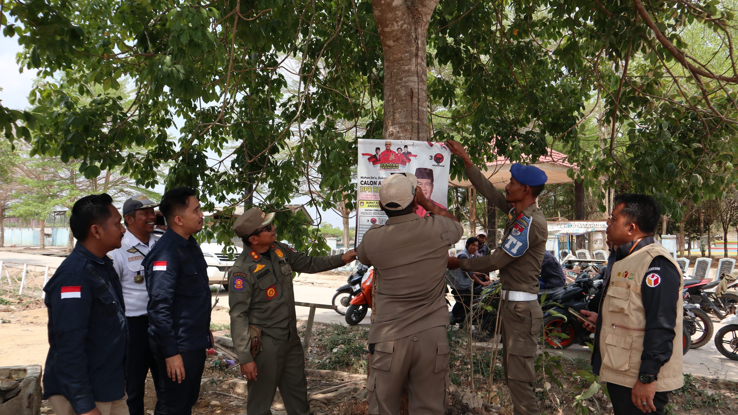 MESUJI - Senin, 30 Oktober 2023, Bawaslu Kabupaten Mesuji bersinergi dengan SATPOLPP, Dinas Perhubungan, Dinas Lingkungan Hidup, dan Badan Kesatuan Bangsa dan Politik Kabupaten Mesuji. Mereka bekerja sama melaksanakan penertiban alat peraga sosialisasi yang menyerupai alat peraga kampanye. Seluruh kegiatan ini dilakukan sesuai dengan Peraturan Daerah Kabupaten Mesuji nomor 4 tahun 2020 tentang ketentraman masyarakat dan ketertiban umum serta Surat Edaran Bupati Mesuji nomor: RP.11.00/5830/MSJ/2023 mengenai himbauan penempatan dan pemasangan berbagai atribut di wilayah Kabupaten Mesuji. Aksi ini juga melibatkan jajaran Panwaslu Kecamatan Tanjung Raya, termasuk seluruh pengawas kelurahan dan desa di kecamatan tersebut.
