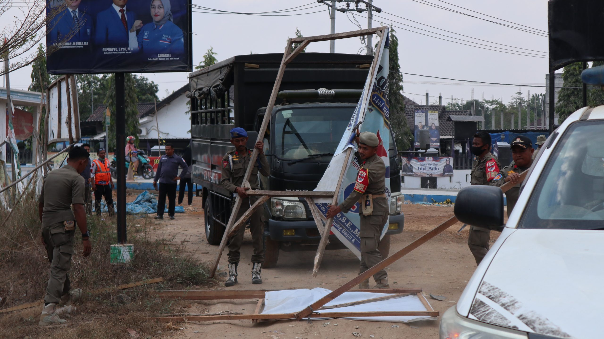 Bawaslu Mesuji Bersama Lintas Instansi Gelar Operasi Penertiban Alat Peraga Sosialisasi